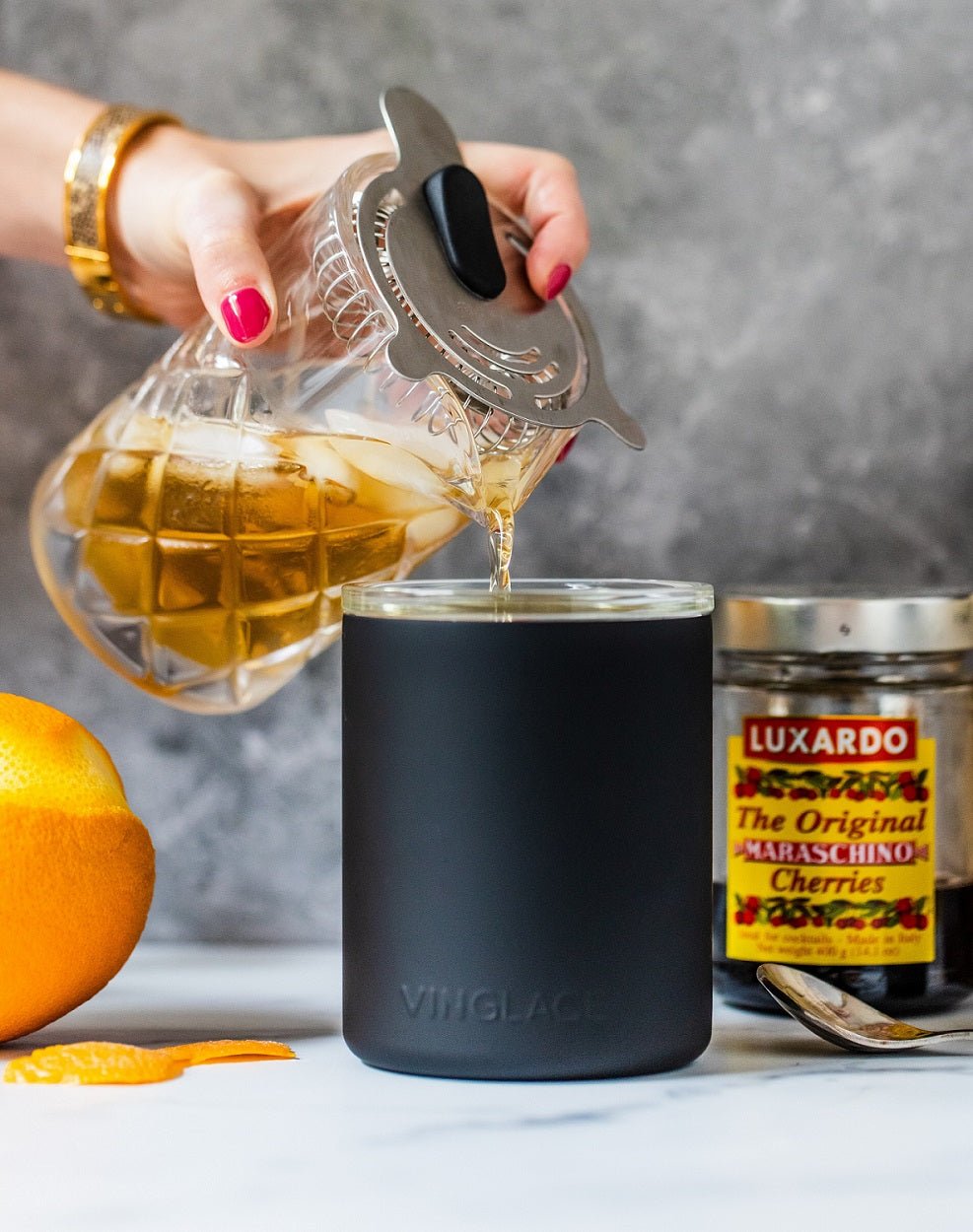 Our Whiskey Low Ball Glasses are glass lined, so you can take your whiskey neat, or on the rocks, without that metallic taste or smell. The exterior is made of stainless steel, which will keep your whiskey at just the right temperature, so you can enjoy it at your pace. The glass insert is dishwasher safe and comes with a slide close lid.